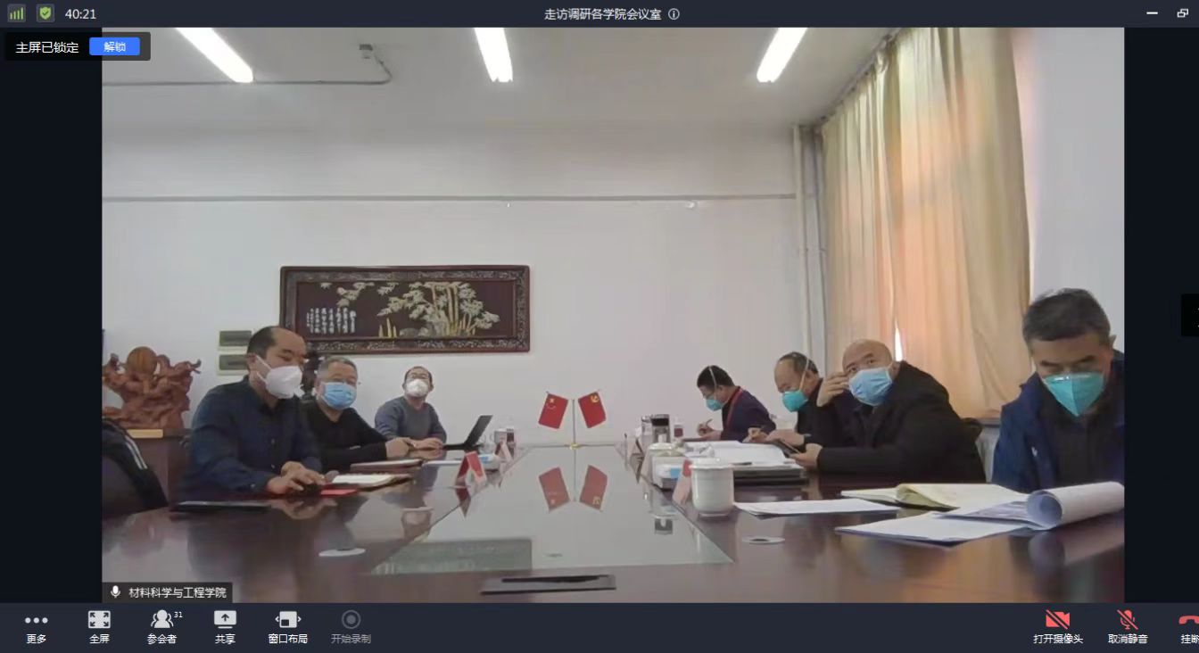 调研中,校领导实地查看了学院办公场所及实验室等,与教师们进行了线下线上交流座谈。