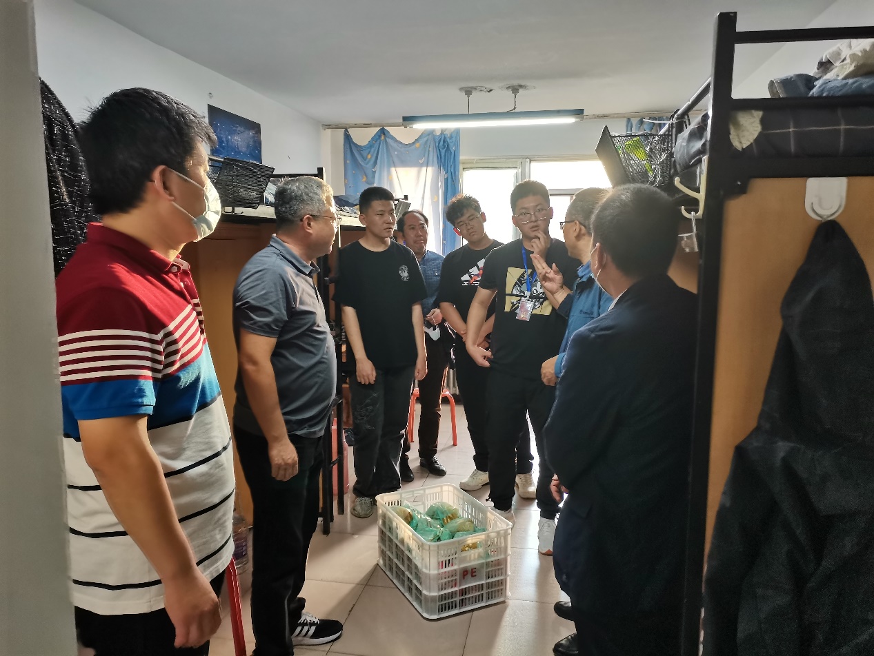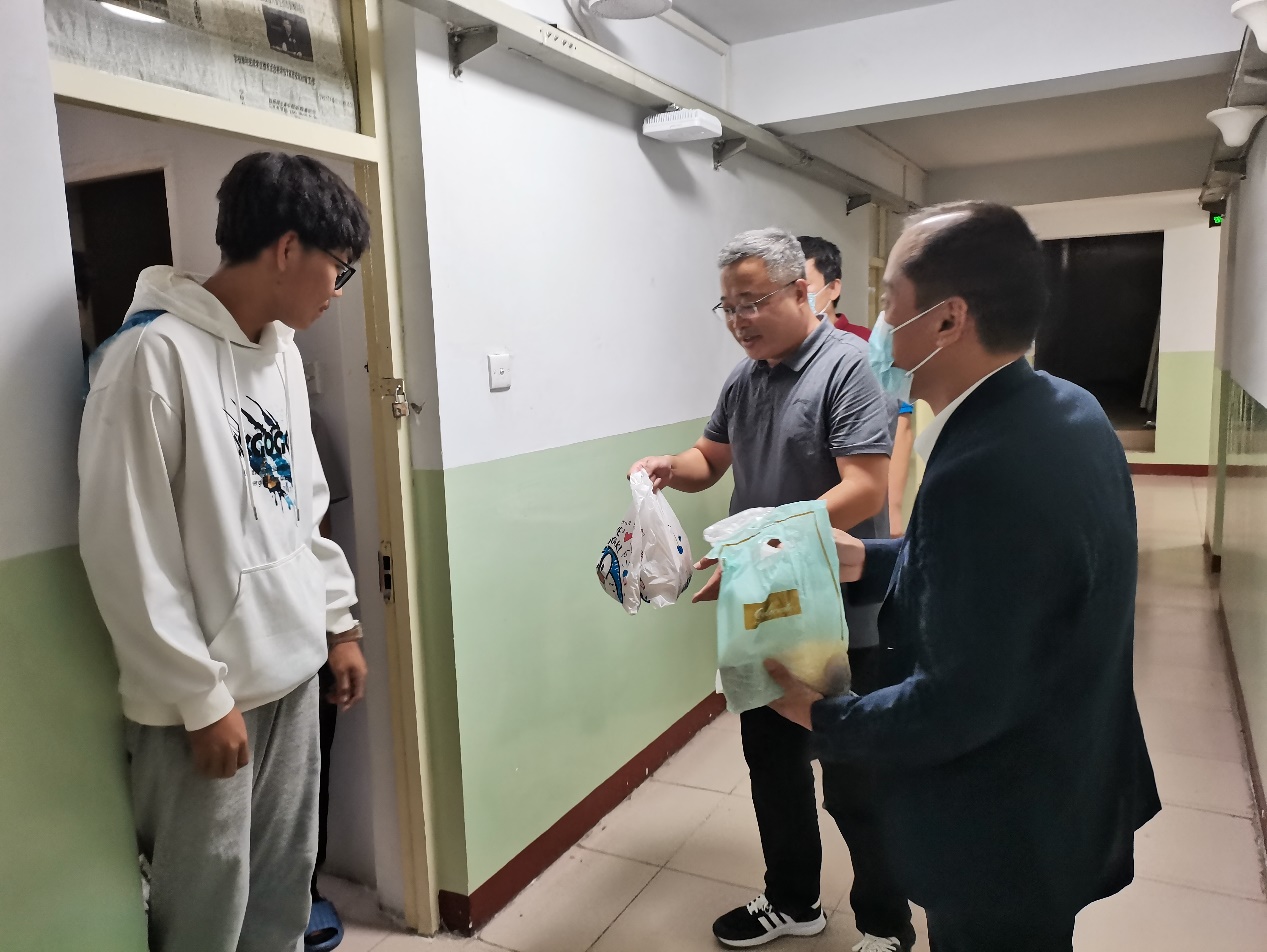 9月9日下午,yL23411永利官网登录开展中秋节前慰问新生活动。学院党委书记曙光,党委副书记、院长吕凯,党委副书记、副院长王金彪,党委委员、副院长李国伟,党委委员、副院长徐俊瑞,团学工作办公室老师及新生班主任老师前往宿舍,为学院22级全体本科生、研究生和在过度宿舍的同学们送上慰问品和节日祝福。