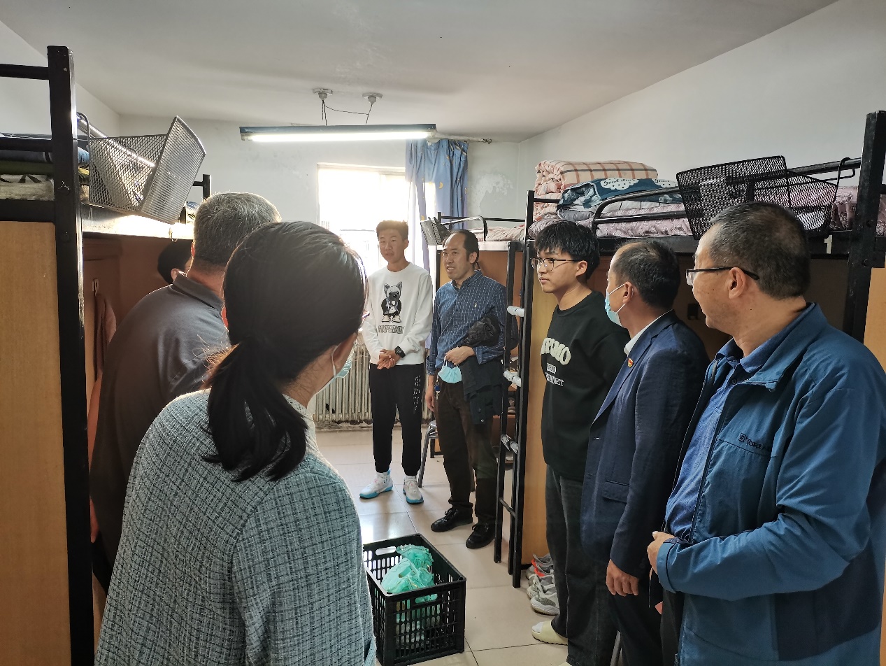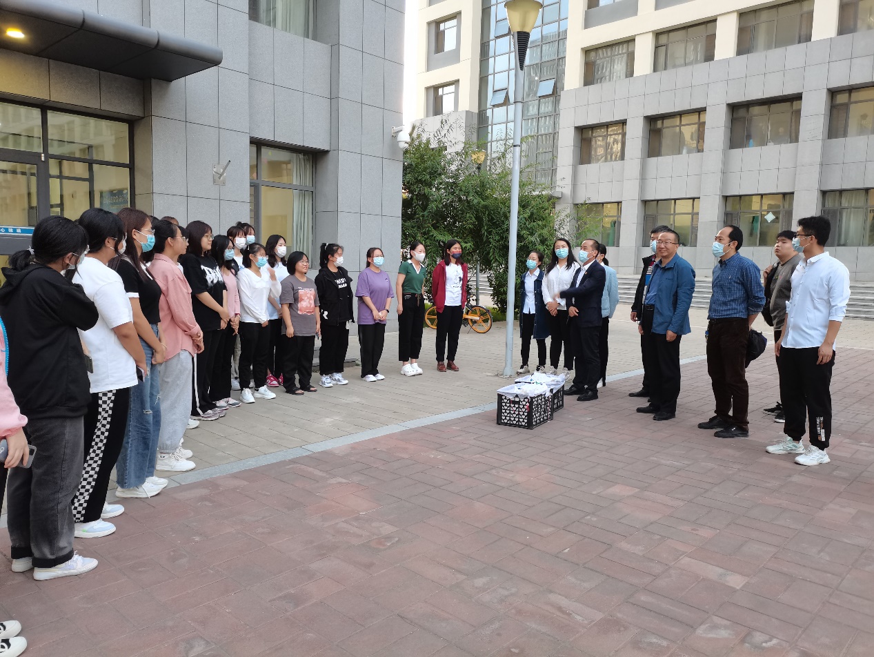 随后,老师们来到过度宿舍,为在过度宿舍的同学们送上节日祝福。同学们透过窗户对院领导、老师们的慰问表达了感谢。