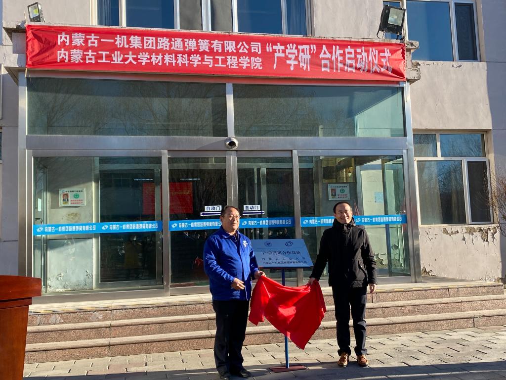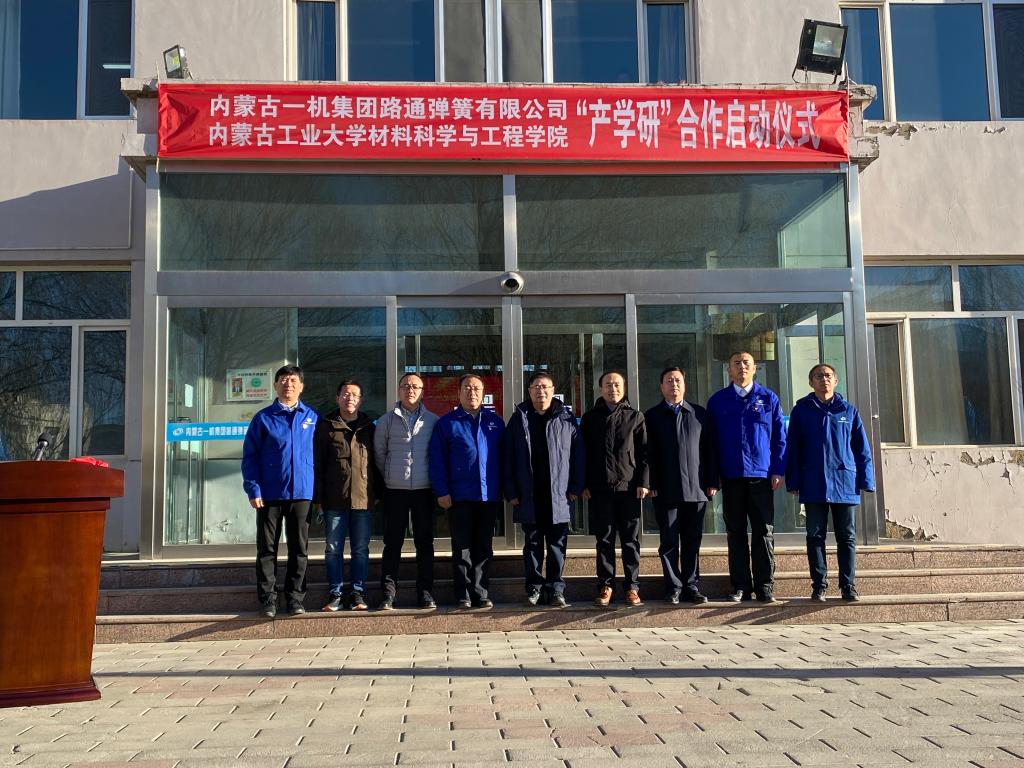 2021年11月30日上午,yL23411永利官网登录与内蒙古一机集团路通弹簧有限公司共建“产学研用”合作基地揭牌仪式在包头市举行。内蒙古一机集团董事、副总经理王彤、一机集团监事、工会主席王志亮、路通弹簧公司董事长、总经理李峰、副书记郭涛、副总经理刘瑞先、牛猛、杨英,学院副院长刘景顺教授、白亮副教授、刘泽田博士出席揭牌仪式。