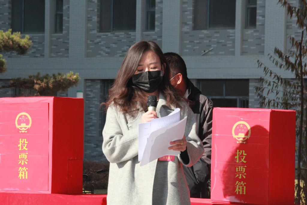 选举大会在全体成员奏唱国歌中开始。随后主持人菅妮宣读了候选人名单,李国伟简单介绍了两位候选人信息,白曙光接着对选举人如何行使选举权和投票规则进行讲解。本次投票采取不记名投票方式进行,由多位检票老师、学生工作人员共同保证投票秩序。红色票箱端放前台,现场气氛庄重,每一名选民都以认真严肃的态度,行使自己的民主权利,为信任的候选人投上郑重的一票。同学们以高昂的热情参与其中,积极行使着法律赋予自己的政治权利。
