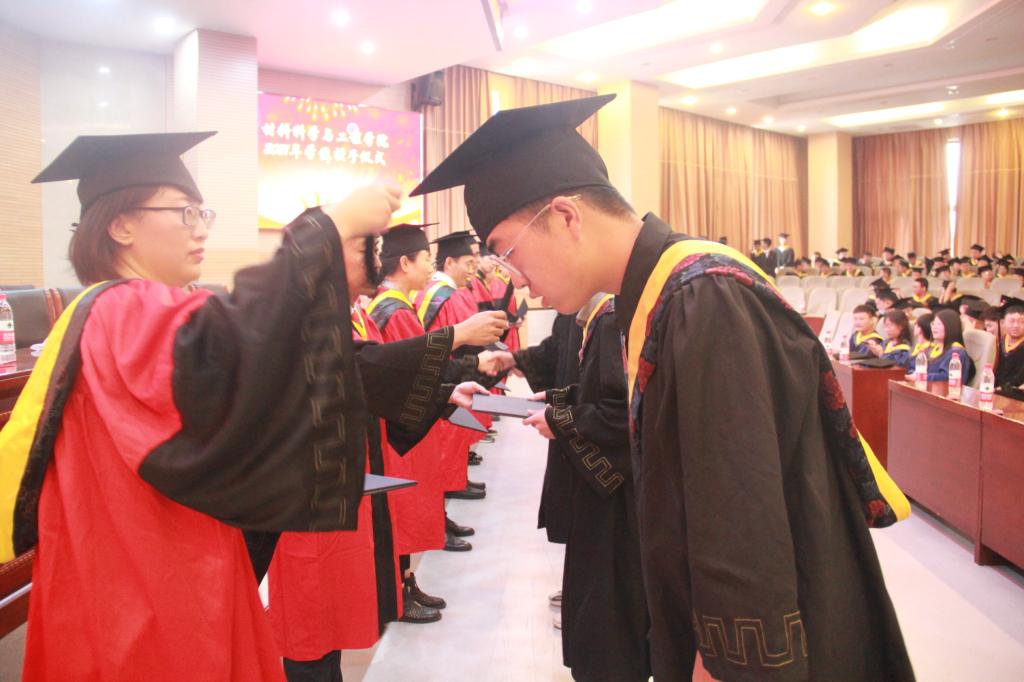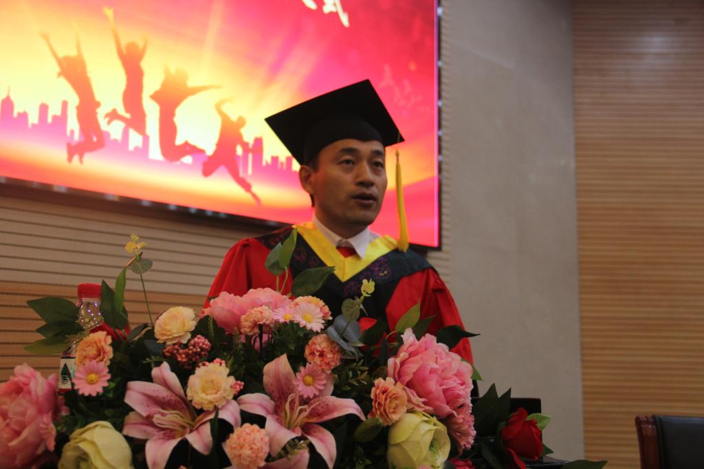 副院长刘景顺向完成学业的同学们表示祝贺,向培养学生成长成才的全体教职员工表示感谢,并对同学们寄予三点希望:一是希望大家收获坚强,时刻保持坚定的意志,在困难、诱惑、挑战面前,收获更坚强的自己。二是希望大家感受幸福,心无旁骛、聚精会神、精益求精,在工作岗位上磨砺意志感受幸福。三是希望大家都能实现成长,继续发扬工大“博学躬行,尚志明德”的校训精神,以更高的视野、更大的智慧走向人生更广阔的舞台。