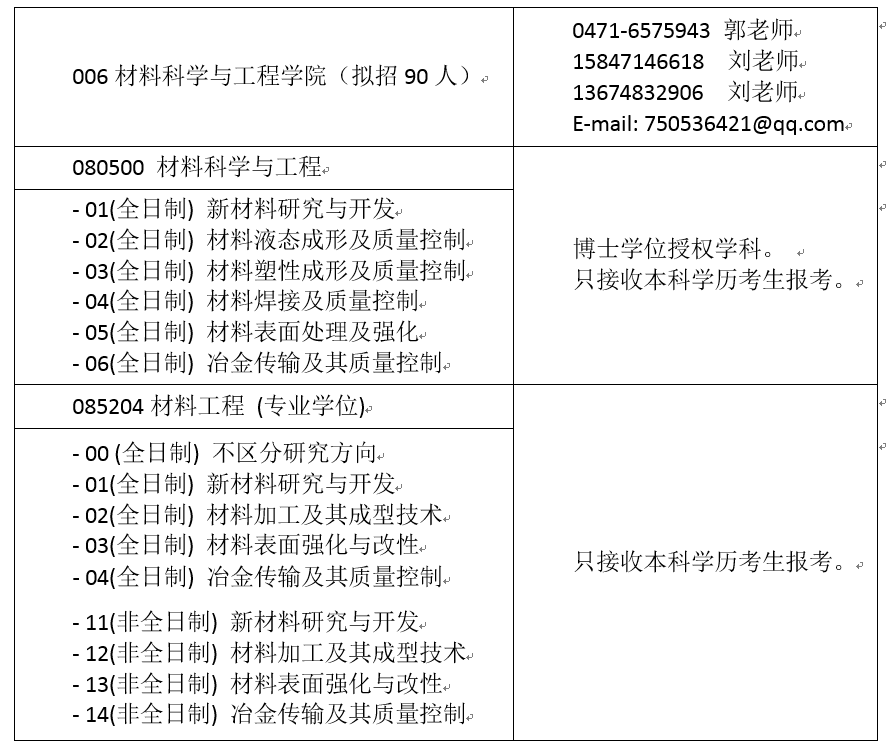 凡具有材料科学、材料物理、材料化学、机械工程、冶金工程等相关工科背景的考生,且达到2018年国家B区分数线(暂未公布,单科小分均需过线),均可申请调剂。具体调剂复试通知等相关事宜,请随时关注网站通知:校研究生院网站:http://yjsch.imut.edu.cn/和yL23411永利官网登录网站:http:/。同时,也可登陆我校研究生院网站查询复试相关信息和奖助学金政策:http://yjsch.imut.edu.cn/info/1006/2439.htm;yL23411永利官网登录硕士研究生导师情况参见:http://yjsch.imut.edu.cn/info/1086/1873.htm。