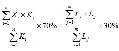 其中Xi为研究生个人培养计划中每门学位课程的分数,Ki为每门学位课程的学分,n为学位课程门数,Yi为研究生个人培养计划中每门非学位课程的分数,Li为每门非学位课程的学分,m为非学位课程门数。