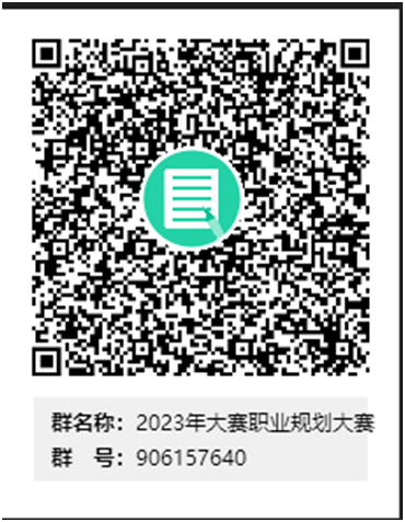 5.为方便联系,后续发送各类资料或培训信息,请报名学生加入qq群906157640(2023年职业规划大赛),或扫描二维码进入群