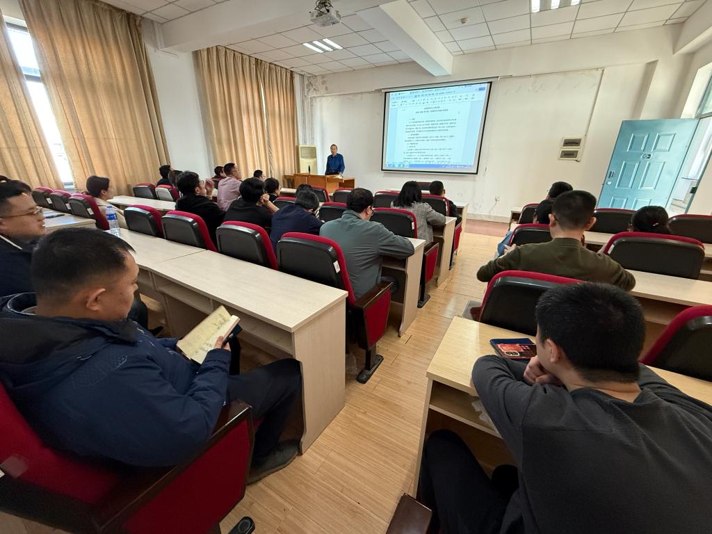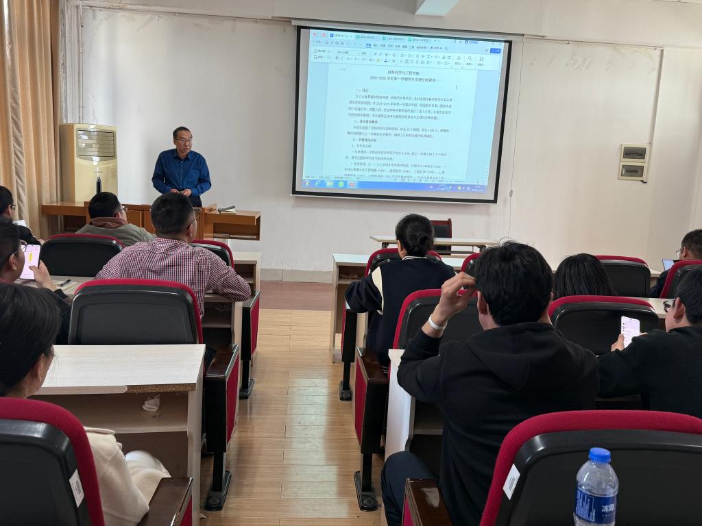 王金彪介绍了学院2025年学风建设方案,从班级课堂出勤、补考率、国家外语四六级通过率、学业预警分布、参加学科竞赛、违纪等情况对2024-2025学年第一学期本科生各年级各班级学习状况进行了分析,总结分析了学风建设中存在的主要问题及原因,要求22-24级各班级召开主题班会进行学情分析,每位同学结合上学期的成绩和目前学分绩点查找差距和存在的问题,有针对性制定习计划,班级查找学风建设中存在的主要问题、原因,制定赶超目标、改进的措施与建议。